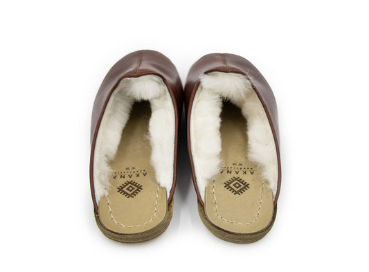 Tan Lambswool Leather Mules